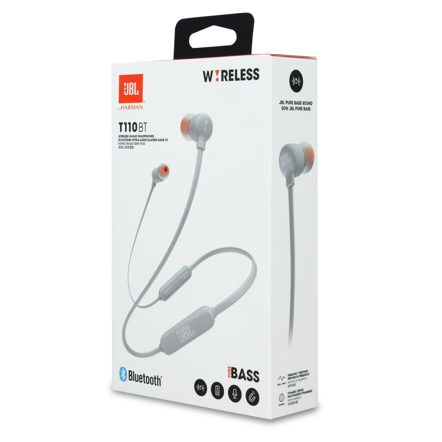 • JBL T110BT • Auriculares inalámbricos intraurales con Pure Bass • Mando a distancia y micrófono • Batería de hasta 6 horas • 2h de recarga • Color Gris