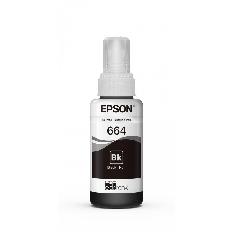 • BOTELLA DE TINTA EPSON T664420 NEGRO 70ML. • COMPATIBLE CON LOS IMPRESORES • L110 L120 L200 L210 L220 L300 L310 L350 L355 L365 • L375 L380 L395 L396 L455 LL475 L495 L555 L565 L575 • L606 L655 L565 L1300 L1455