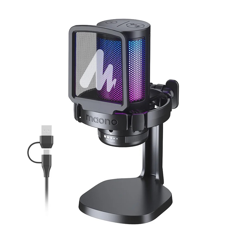 MICROFONO PROFESIONAL MAONO DGM20 RGB USB CON MONTURA Y POP FILTER