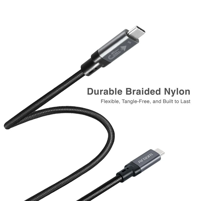 CABLE USB-C MACHO-MACHO THUNDERBOLT ARGOM 240W 40GBPS 8K 4K/60Hz ARG-CB-1408BK 1.8MTS