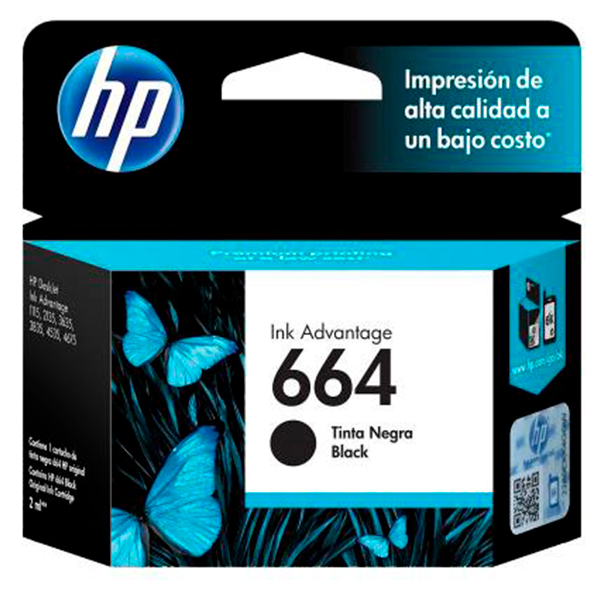 • CARTUCHO DE TINTA HP 664 NEGRO F6V29AL. • COMPATIBLE CON LOS IMPRESORES HP DESKJET • 1115 2135 2675 3635 3775 3785 3787 3789 3835 4535 4675