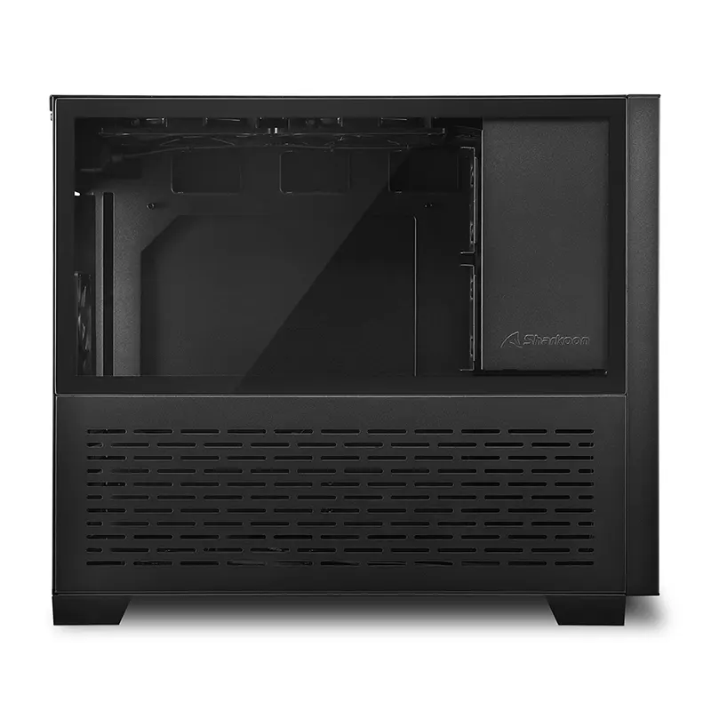 Con la MS-Z1000, Sharkoon presenta una caja micro-ATX que combina un diseño elegante con una funcionalidad inteligente. Su panel frontal de acero no solo tiene un aspecto único, sino que proporciona una permeabilidad del aire óptima para refrigerar los componentes más grandes y de alto rendimiento.