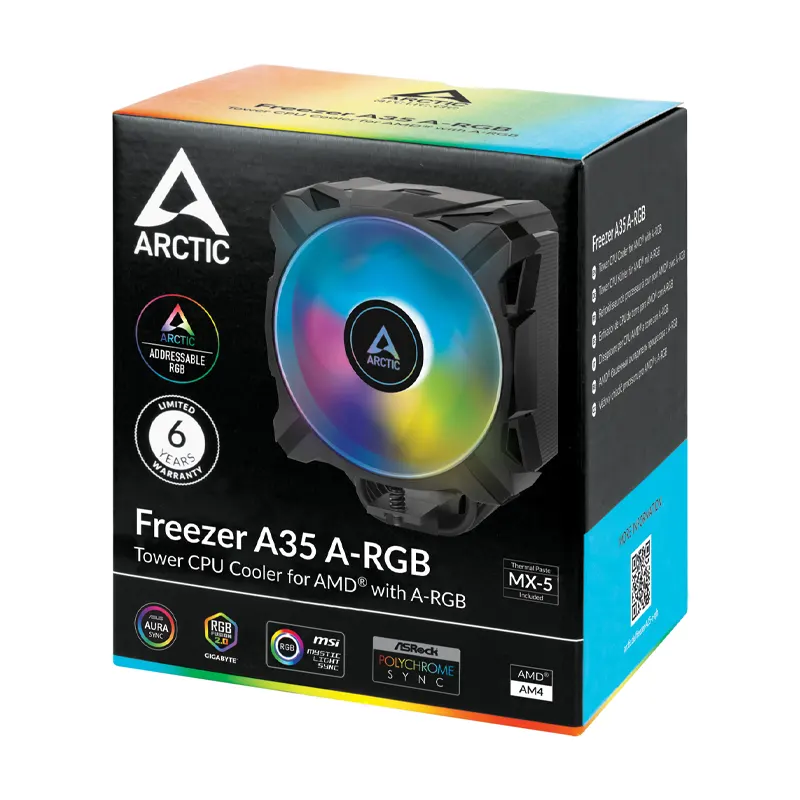 FÁCIL INSTALACIÓN Y ESPACIO LIBRE: El Freezer A35 A-RGB es una variante de instalación específica de enchufe para AM4. Esto reduce el material de montaje innecesario y además simplifica la instalación. ARCTIC utiliza un sistema de montaje mejorado y simplificado con tornillos de resorte para el congelador A35 A-RGB. Esto logra una presión de contacto óptima y una distribución uniforme del compuesto térmico. Debido a su diseño compacto, permite una compatibilidad RAM sin restricciones cuando se instala.