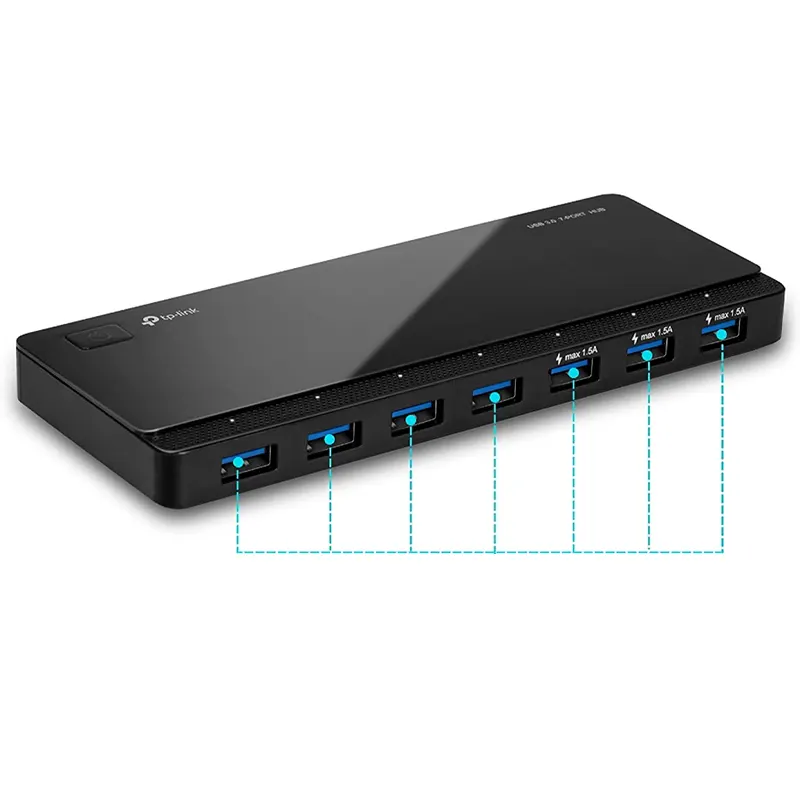 El Hub USB UH700 es una gran elección para expandir los puertos USB de tu ordenador para transferir datos cuando necesites conectar discos duros USB, ratones USB, impresoras USB, u otros dispositivos de manera simultánea. Los puertos USB 3.0 ofrecen tasas de transferencia de hasta 5Gbps, 10 veces superior que con los USB 2.0.