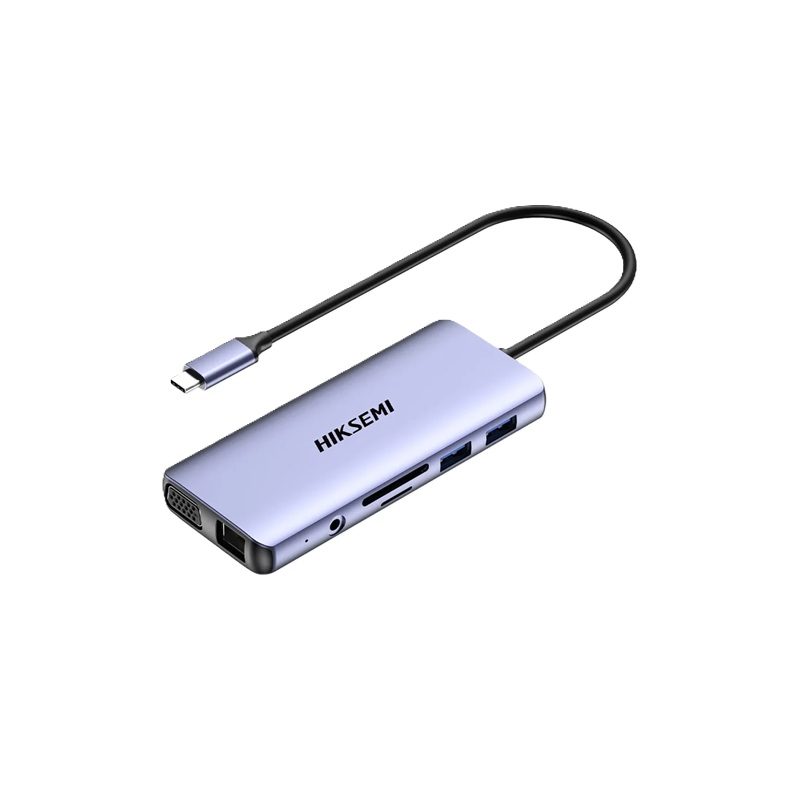 HUB USB-C HIKSEMI HDMI USBX2 USB-C PD IN RJ45 VGA TF 3.5MM HS-HUB-DS11