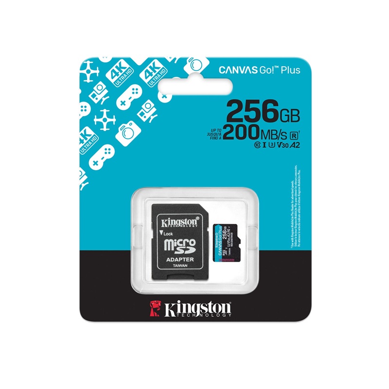 MEMORIA MICROSD KINGSTON 256GB V30 A2 U3 CANVAS GO plus SDCG4/256GB hasta 200mb/s