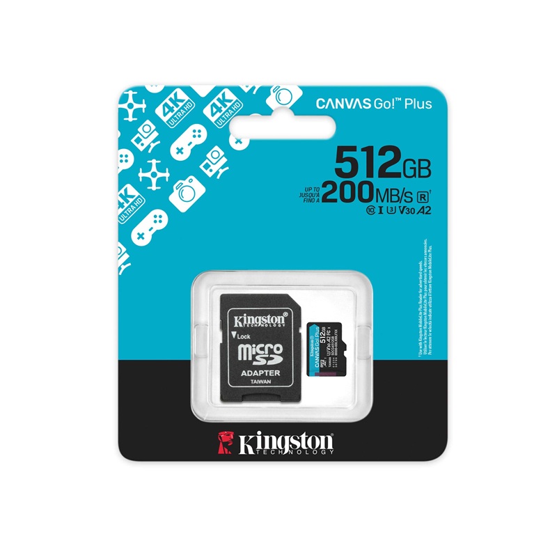 MEMORIA MICROSD KINGSTON 512GB V30 A2 U3 CANVAS GO plus SDCG4/512GB hasta 200mb/s