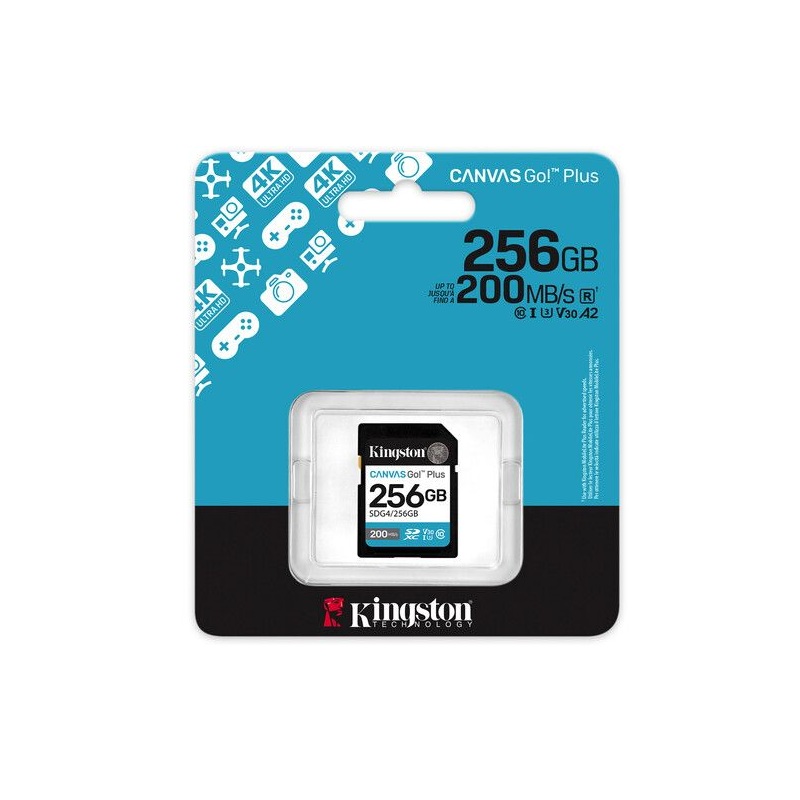 MEMORIA SD KINGSTON 256GB CANVAS GO PLUS V30 U3 A2 SDG4/256GB HASTA 200MB/S
