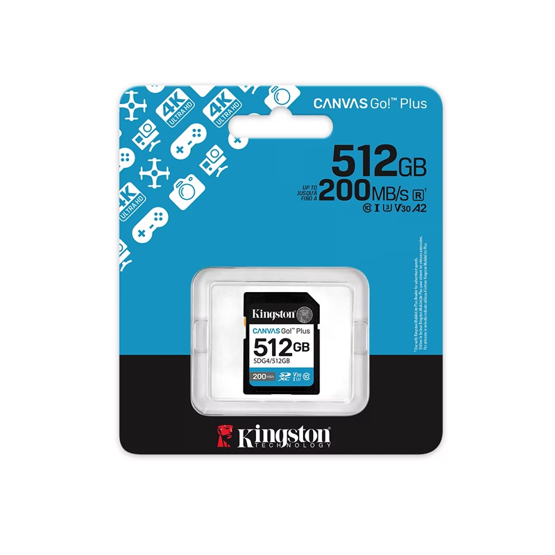 MEMORIA SD KINGSTON 512GB CANVAS GO PLUS V30 U3 A2 SDG4/512GB HASTA 200MB/S