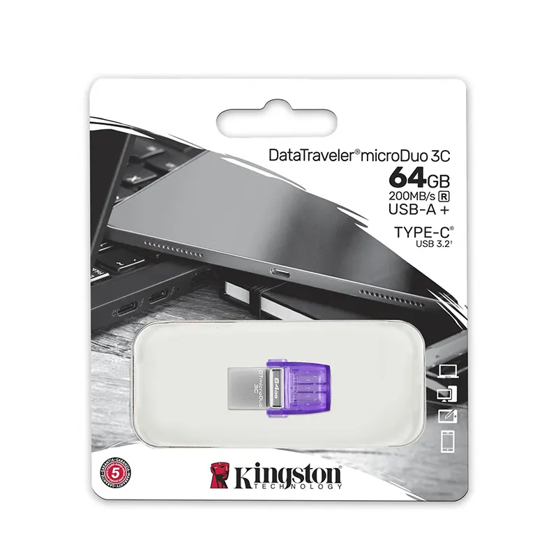 DataTraveler® microDuo™ 3C tiene una doble interfaz que funciona con los nuevos USB Type-C®1 y los puertos USB Type-A tradicionales.
