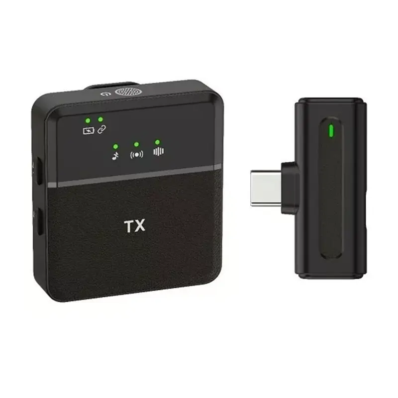 Micrófono corbatero inalámbrico con conector USB Tipo C, compatible con celulares y cámaras con este conector.