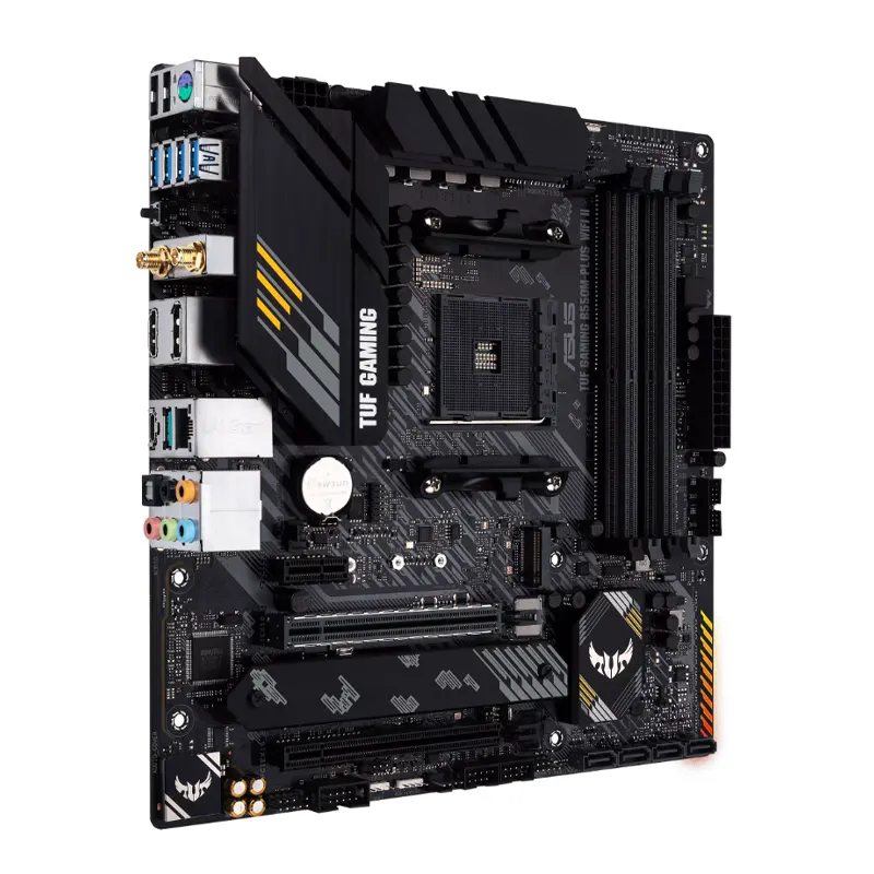 TUF Gaming B550M-Plus WIFI II destila elementos esenciales de la última plataforma AMD y los combina con funciones listas para jugar y durabilidad comprobada. Diseñada con componentes de grado militar, una solución de alimentación mejorada y un conjunto completo de opciones de refrigeración, esta placa base ofrece un rendimiento sólido con una estabilidad de juego inquebrantable.