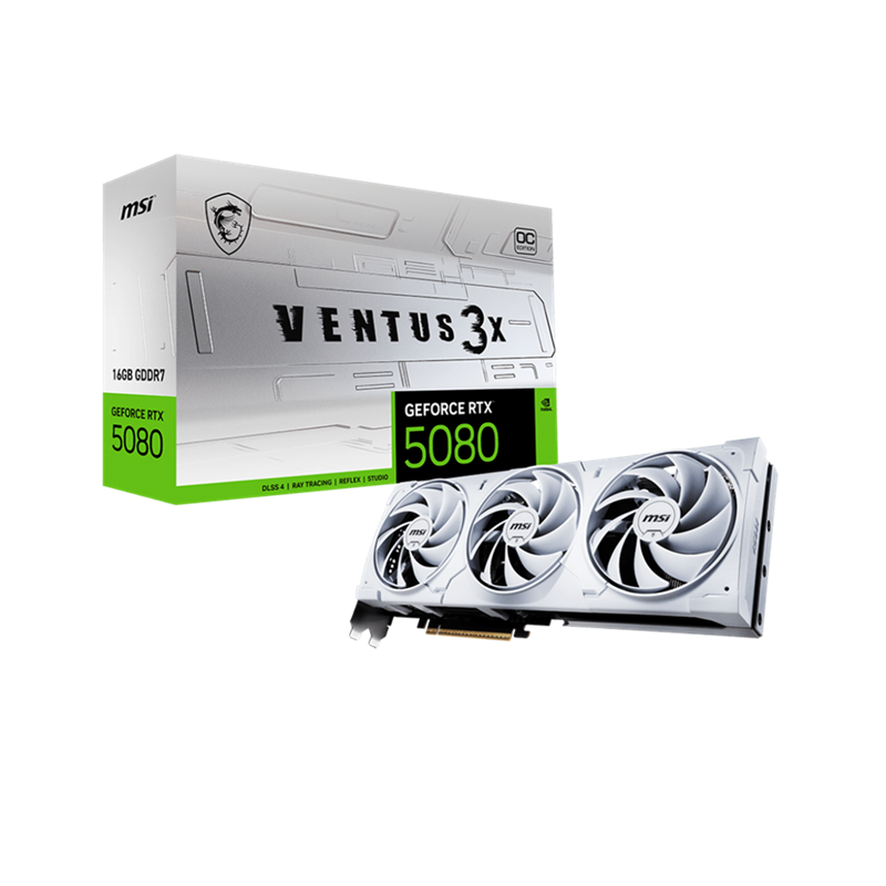 TARJETA DE VIDEO MSI VENTUS 3X RTX5080 16GB GDDR7 OCE G5080-16V3CW BLANCO